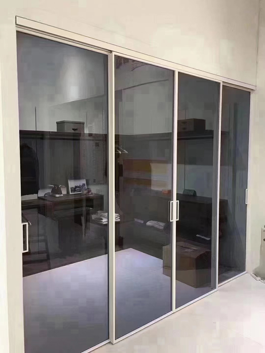材料規(guī)格:2.0,光企23,中空鋼化,吊軌+導向輪,多色可選